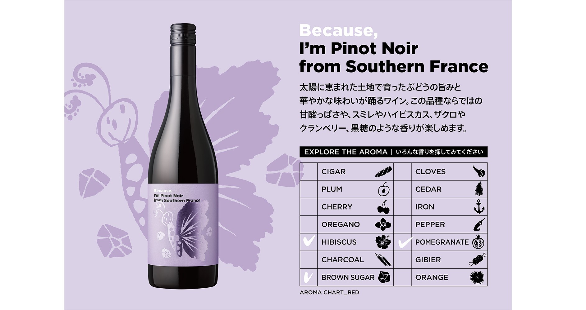 この品種ならではの甘酸っぱさや、スミレやハイビスカス、