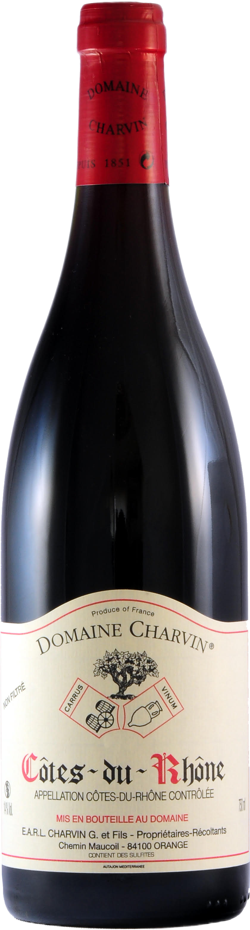 1851年創業のシャルヴァンは、6代にわたり家族経営を続けてきた歴史あるワイナリーである。1990年に弱冠21歳でドメーヌを継いだ現当主ローラン・シャルヴァンは、それまで全てのブドウを協同組合に販売してきたが、ブドウ農家からワイナリーへの転換という大きな決断を下した。 現在33haの畑を所有し、シャトーヌフ・デュ・パプのアペラシオンの中でも北部に位置する。石が多く力強さが前面に出る南部とは対照的に、砂質土壌を主体に、粘土やシルト、石が混ざる複雑な構造を持つ。 このテロワールこそ、シャルヴァンのエレガンスと繊細さの源泉といえる。ローランの哲学はシンプルだ。この多様な土壌がもたらす良質なブドウを丁寧に育み、複数のキュヴェを作り分けるのではなく、テロワールの魅力を一つの表現として追求している。伝統に深く根ざしながらも、土地の可能性を最大限に引き出す姿勢こそが、ドメーヌの長い歴史を現在へと繋ぐ確かな力となっている。